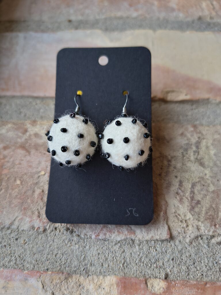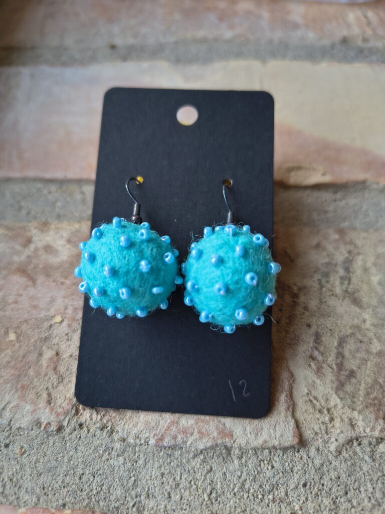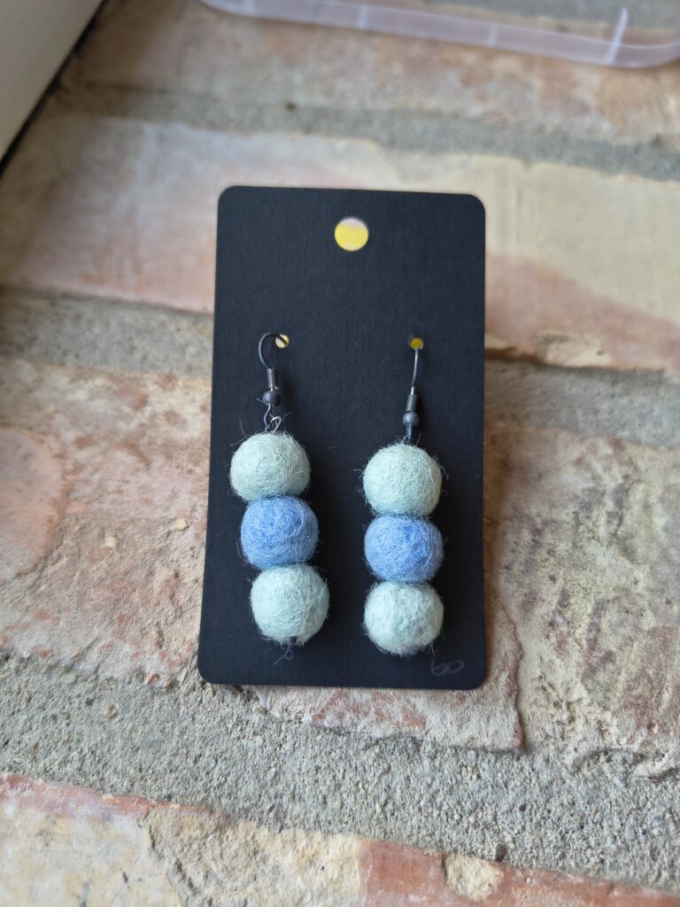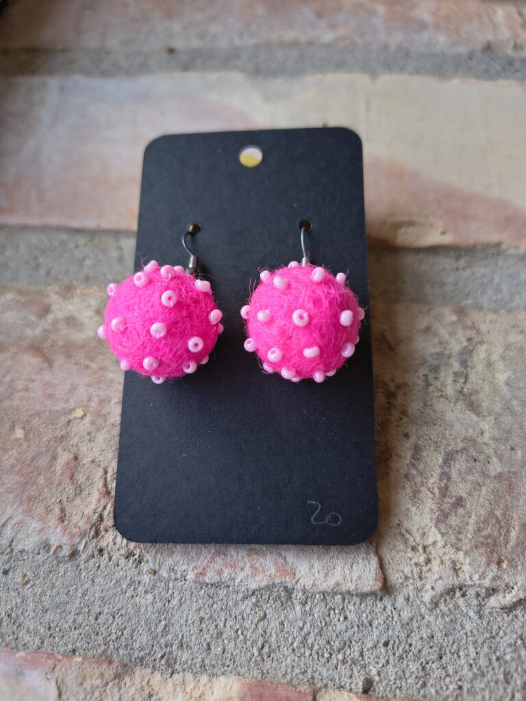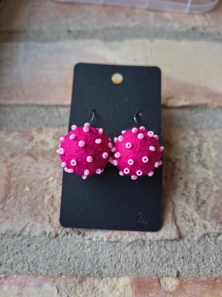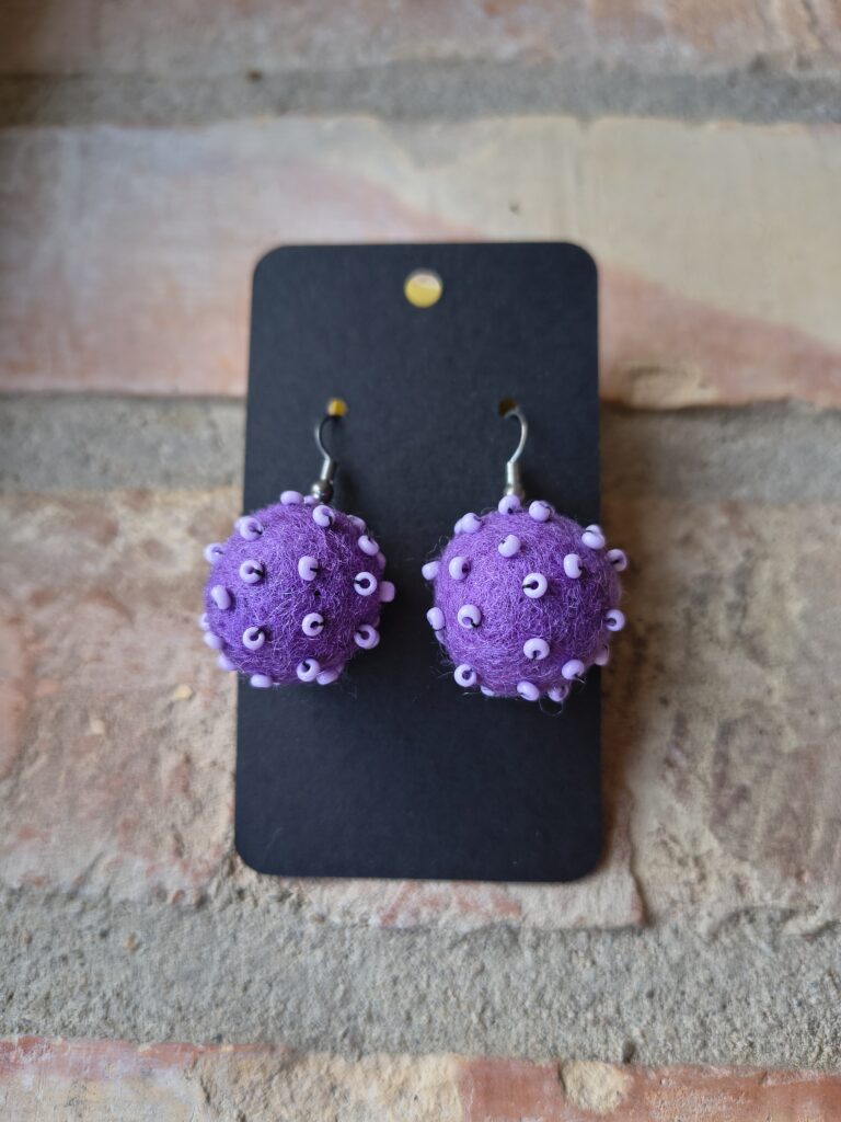 Örhänge Publicerat mars 10, 2026 av Skovmose by hand Svara Änglestina har skapat dessa vackra skapelser. Ull är nåltovad och pärlorna är sytt på. Lätta och färgglada. Du hittar dem i web-butiken