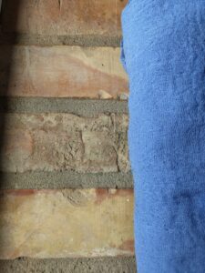 Väven är ojämn i båda trådarna och vävningen, det gör att den är ganska rå i sitt uttryck, vilket jag tycker är så vackert. Det ger en oregelmässiga strukturar och texturar i det tovade produkt. Den är vacker att kombinerar med andra tyger som sidenchiffong eller sidenpongé.