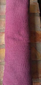 Väven är ojämn i båda trådarna och vävningen, det gör att den är ganska rå i sitt uttryck, vilket jag tycker är så vackert. Det ger en oregelmässiga strukturar och texturar i det tovade produkt. Den är vacker att kombinerar med andra tyger som sidenchiffong eller sidenpongé.