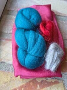 Innehåll: 3m x 45cm sidentyg, Merinoull 19 mic,  dekorationsfiber (av silke, sarisilke, viskos, lin eller hampa) + instruktion i text + bild.