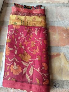 Här får du mycket fint sidentyg för pengarna. Vackra mönstra, färgar och bling på köpet.