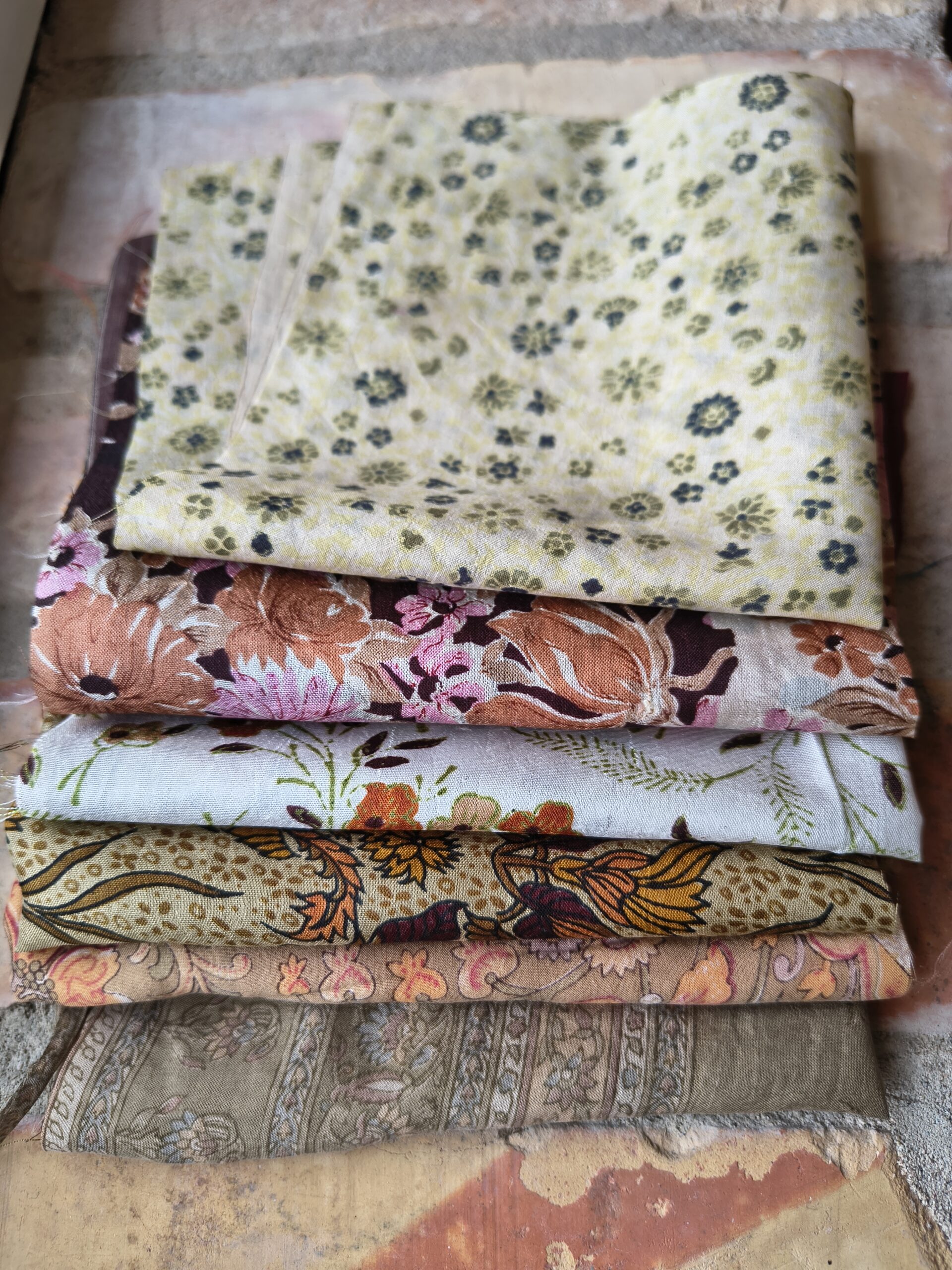 Här får du mycket fint sidentyg för pengarna. Vackra mönstra, färgar och bling på köpet.