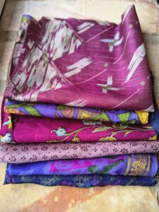 Här får du mycket fint sidentyg för pengarna. Vackra mönstra, färgar och bling på köpet.