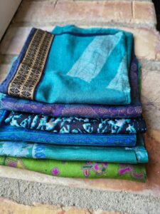 Här får du mycket fint sidentyg för pengarna. Vackra mönstra, färgar och bling på köpet.