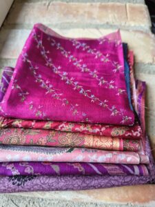 Här får du mycket fint sidentyg för pengarna. Vackra mönstra, färgar och bling på köpet.